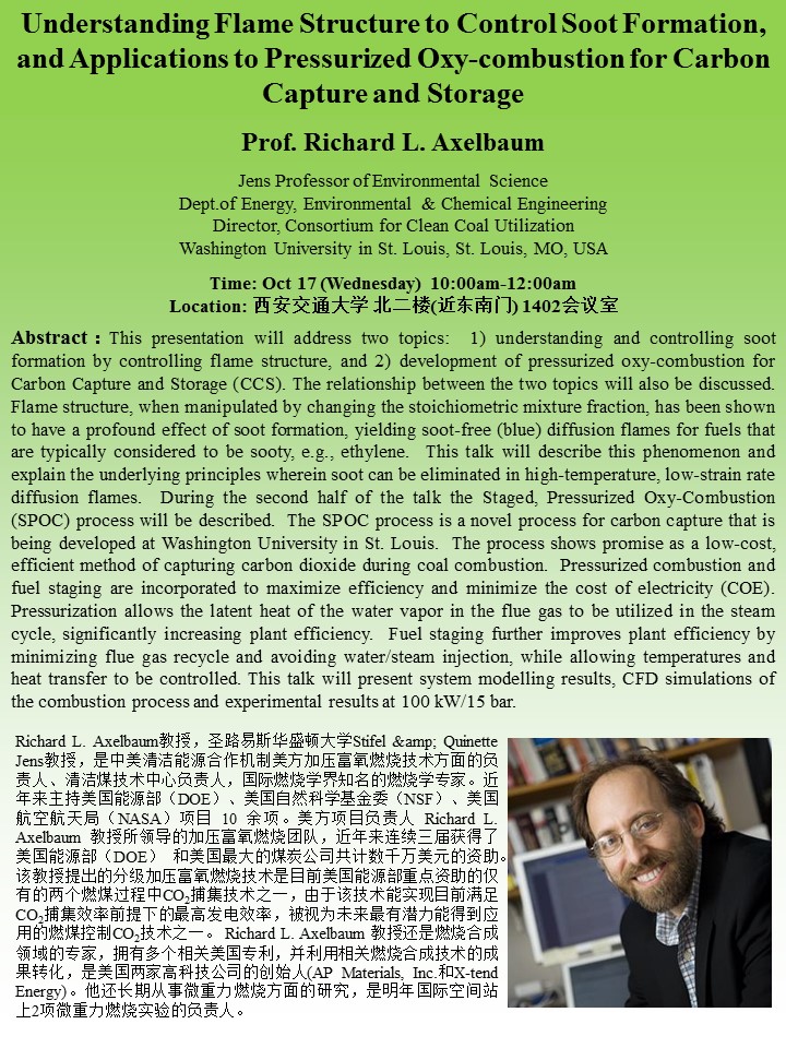 Richard Axelbaum is the Jens Professor of Environmental Science in the Department of Energy, Environmental and Chemical Engineering at Washington University in St. Louis. He is currently the Director of the Consortium for Clean Coal Utilization at Washington University and from 1998 to 2007, he was chairman and chief scientific advisor for AP Materials, Inc., a startup company he founded that specialized in flame synthesis of nanopowders. The company was acquired by Cabot Corporation in August of 2007.