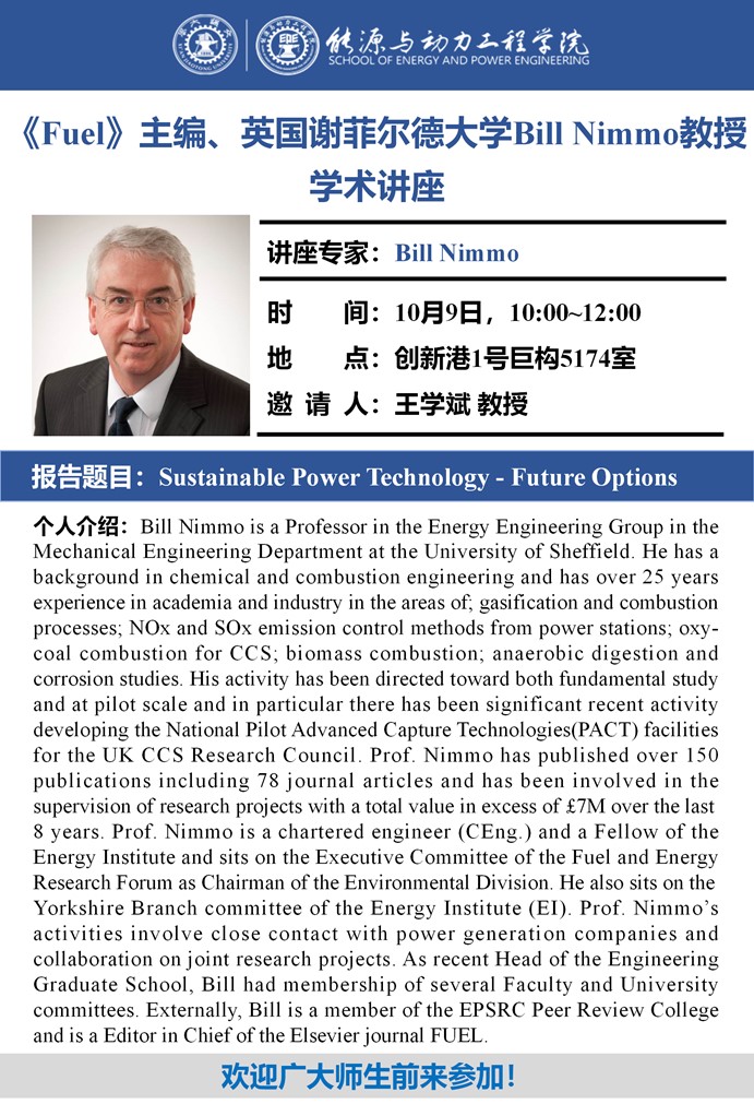 报告人:Bill Nimmo,英国谢菲尔德大学