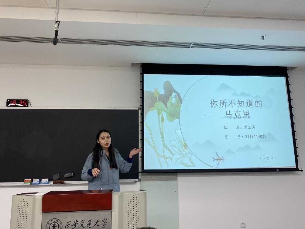 刘若男同志介绍了马克思为人类的幸福而奋斗、勇攀思想高峰、为推翻旧社会而不断战斗的一生。她通过马克思求学的经历与马克思和燕妮的革命爱情故事,勉励各位同志不惧权威、追求真理,为共产事业理想奋斗终身。