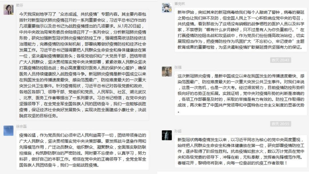 战“疫”成长课,领会战“疫”中的科学精神、家国情怀和教育成长,支部成员纷纷表示受益匪浅,收获良多。
