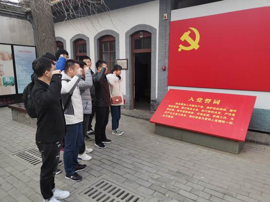 接着,同学们来到了八路军西安办事处纪念馆。在讲解员的细心讲解下,同学们先后参观了周恩来、朱德、刘少奇、彭德怀、叶剑英、邓小平、林伯渠、董必武等老一辈无产阶级革命家的工作生活旧址。通过浏览一系列珍贵的资料、图片,聆听着党的历史故事,同学们心中燃起了对革命先烈们的崇敬之情,让大家在思想上真正接受了一次爱国主义的洗礼。在八路军驻西安办事处纪念馆的后院里,鲜红色的党旗下是每名党员都铭记于心的入党誓词。支部成员再一次重温入党誓词,短短的一段话概括了我们党对党员的基本要求,也概括了党员对党组织和党的事业所应承担的政治责任。