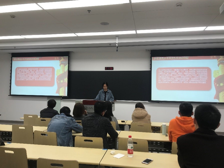 为充分调动支部党员的参与性,此次组织生活会的形式以每位党员自主选择话题并与大家分享讨论的形式展开。各位党员同志结合自己会前准备的ppt以及自身感悟,向大家分享学习、解读和调研过程中的感悟和启发。谈到全面建成小康社会,孙潇萌同志从赓续昨天、创造今天和发展明天三个方面对话题进行了解读,并通过对线上支付与五年前现金支付的对比,进一步肯定了国家在过去五年方方面面的进步。赵祎玮同志从科研、创业和企业发展三个方面展开,谈到了她对发展人才,留住人才的看法。黄善恩同志在介绍“加快发展现代化产业形势,推动经济体系优化升级”这个话题时,与大家分享了他在浙江宁波的工作经历,并且从发展现代化产业的角度讨论了如何进一步提升中国制造竞争力的问题。支部的每一个党员都展开讨论了相关话题,入党积极分子也积极参与到了话题的讨论中,分享了他们对于十四五规划的理解和认识。
