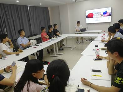最后,由兼职辅导员严凯同志带领大家开展“较量无声,从中美贸易战谈大国成长启示录”的主题学习。严凯同志从中美贸易战的背景、交锋时间点和贸易战对中美的影响等角度进行了详细解说,同时借助广受关注的中兴事件和华为事件分析了中美贸易战的客观和主观原因。纵观整个中美贸易战,我们会发现主动权就在我们自己手里,国家层面必须改革、破除一切不利于创新的体制和制度安排;而对于我们个人层面,则需要做一个具有使命感的人,具有持续学习的能力和独立思考的能力。