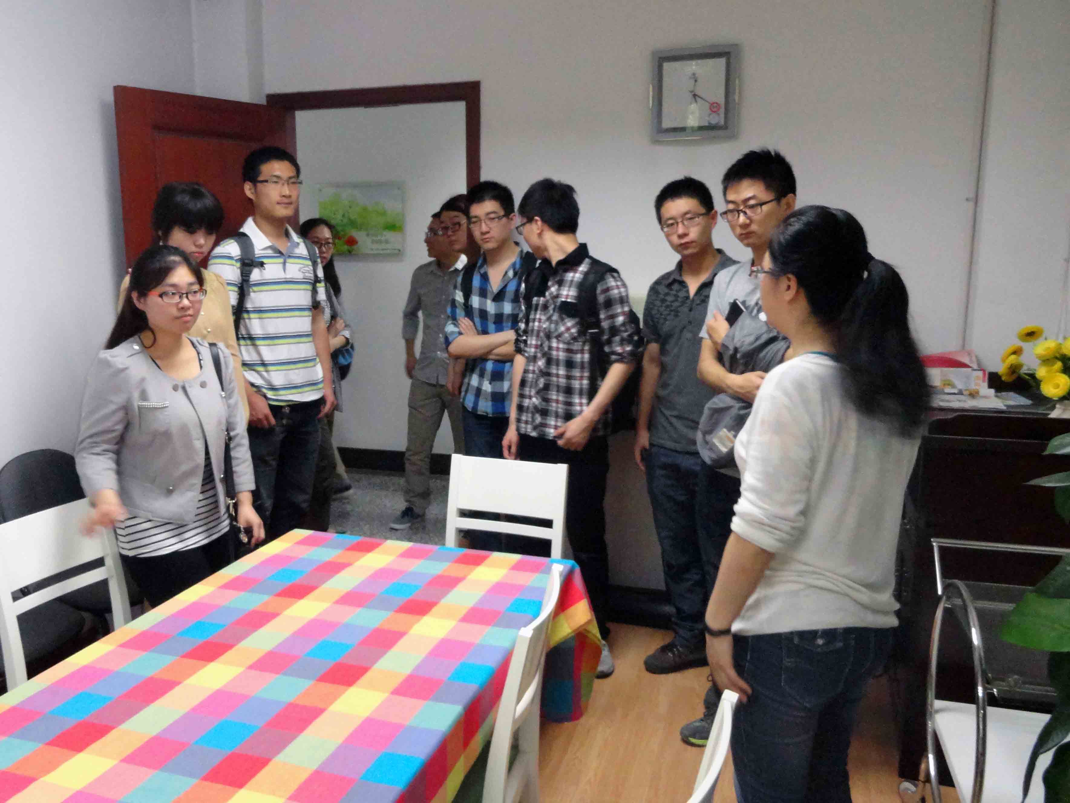 首先,在闫琼老师的带领下,硕3011班成员参观了交大心理咨询中心。这片看似其貌不扬的区域承载着中心十几名老师十几年来的心血。北起第一间房是心理治疗室,里面放置着一大一小两个沙盘,还有各种小玩具。闫琼老师说:“大沙盘一般用于团体接待,小沙盘一般用于个人治疗。这些沙盘虽说看着像是儿时的玩具,却可以在不同的人做游戏时看出这个人内心的真实性格。”下面的一间是宣泄室,放置着一个宣泄人和好多的毛绒玩具,是专门用于愤怒、悲伤情绪的释放。接下来是音乐室,主要用于紧张、焦虑等情绪的排解。此外,依次还有小组辅导室、团体辅导室、测量室、接待室以及个人心理咨询室。这个小小的地方不同的房间分工明确、井井有条,让同学们大开眼界。在心理咨询室里闫琼老师向同学们讲了许多心理咨询的案例,让同学们更为细致深入了解心理咨询内涵,她鼓励同学们在遇到困难、压力的时候可以到咨询中心缓解放松情绪,心理咨询是一个非常有效的沟通方式。