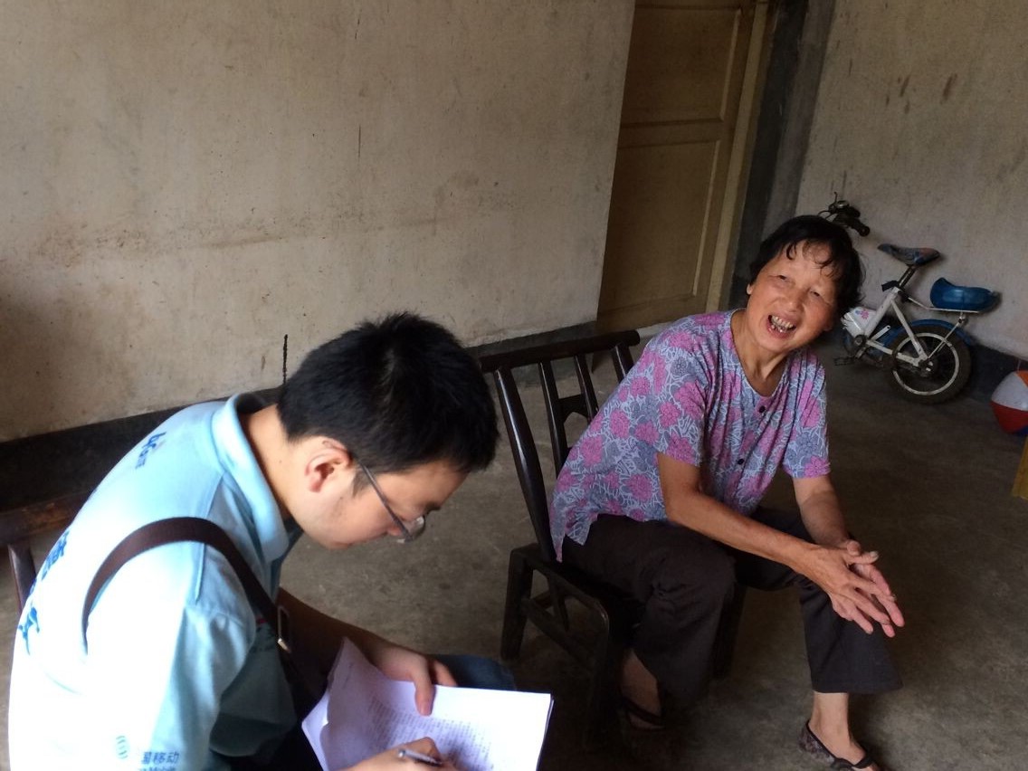 在志愿者到香河村走访的时候,碰到了一个十岁的小男孩。通过交谈志愿者们了解到这个小男孩上二年级,爸爸妈妈都在外地打工,只有每年过年的时候才能见到他们。小男孩与年迈的奶奶仅仅依靠他父母每个月寄回家微薄的生活费过活,可是爷爷重病在床,每个月要去安康医院做近十次透析,昂贵的医药费已然已经拖垮了这个家庭。在采访的过程中,志愿者们一边聆听小男孩和奶奶的倾诉,一边对他们进行开导,让他们对未来的生活抱有更加积极向上的态度。在采访最后,奶奶表达了对小男孩未来的希望,希望他未来的生活不要像现在这样苦;小男孩十分感谢奶奶的抚育之情,并希望在以后的生活里能够和爸爸妈妈有更多的时间在一起生活。志愿者们深受触动,在送上精心准备的礼物的同时,留下了他们的联系方式,希望以后长期对这个家庭进行力所能及的帮扶。