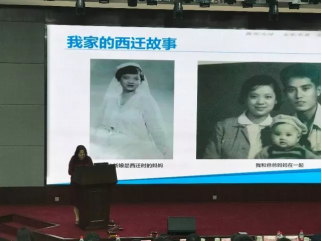 第二位宣讲人是西迁教职工子女代表黄培琦女士。黄培琦女士的父亲黄明德当时是交通大学的青年教师,伯父黄明道是彭康校长的秘书。党中央的决策作出后,黄女士全家几十口人马上达成共识,决定随交通大学西迁至西安。他们舍弃在上海的全部家产,毅然坐上西迁的专列来到大西北。尤其是伯父黄明道,全身心地投入到西迁工作的筹划和组织当中,帮助彭康校长协调各方、谋划全局,甚至无暇顾及家人。黄女士整个家庭的西迁故事充满艰辛与不易,但又散发着温馨和浓浓的爱国情。这是西迁精神最生动的实践,也是西迁精神的发出的最强音。