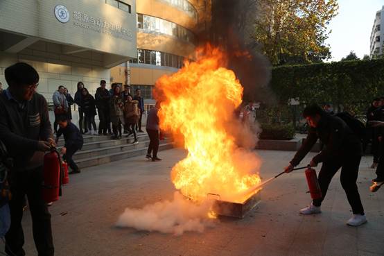 举办消防专题系列活动,11月8日下午,在北二楼报告厅邀请了中国安全健康教育网的培训教员为师生们讲解安全消防知识,会后组织研究生参加了消防灭火演习。