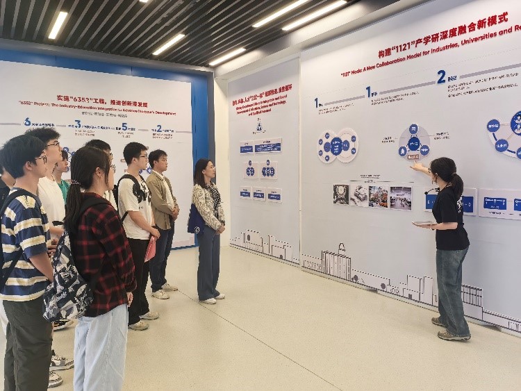 活动伊始,在赵文婷的带领下,与会师生前往电信学部实验室展示中心开展现场研学。期间,重点观摩了微电子电路集成工艺、智能算法开发平台等前沿科研项目,通过实物演示与专业讲解,系统了解了人工智能技术在电子信息领域的核心应用场景及发展趋势。