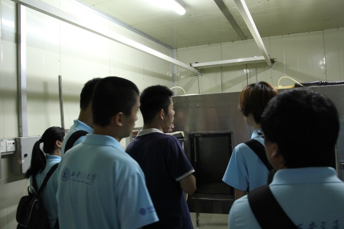 校友(现海信科龙集团员工)李广鹏的带领下满怀期待地开始了实验室参观之旅。参观过程中,海信工程师热情地为我们讲解焓差实验室、噪音控制室和电控实验室的技术要点,实践团的队员们积极地和专业工程师进行交流,气氛融洽。