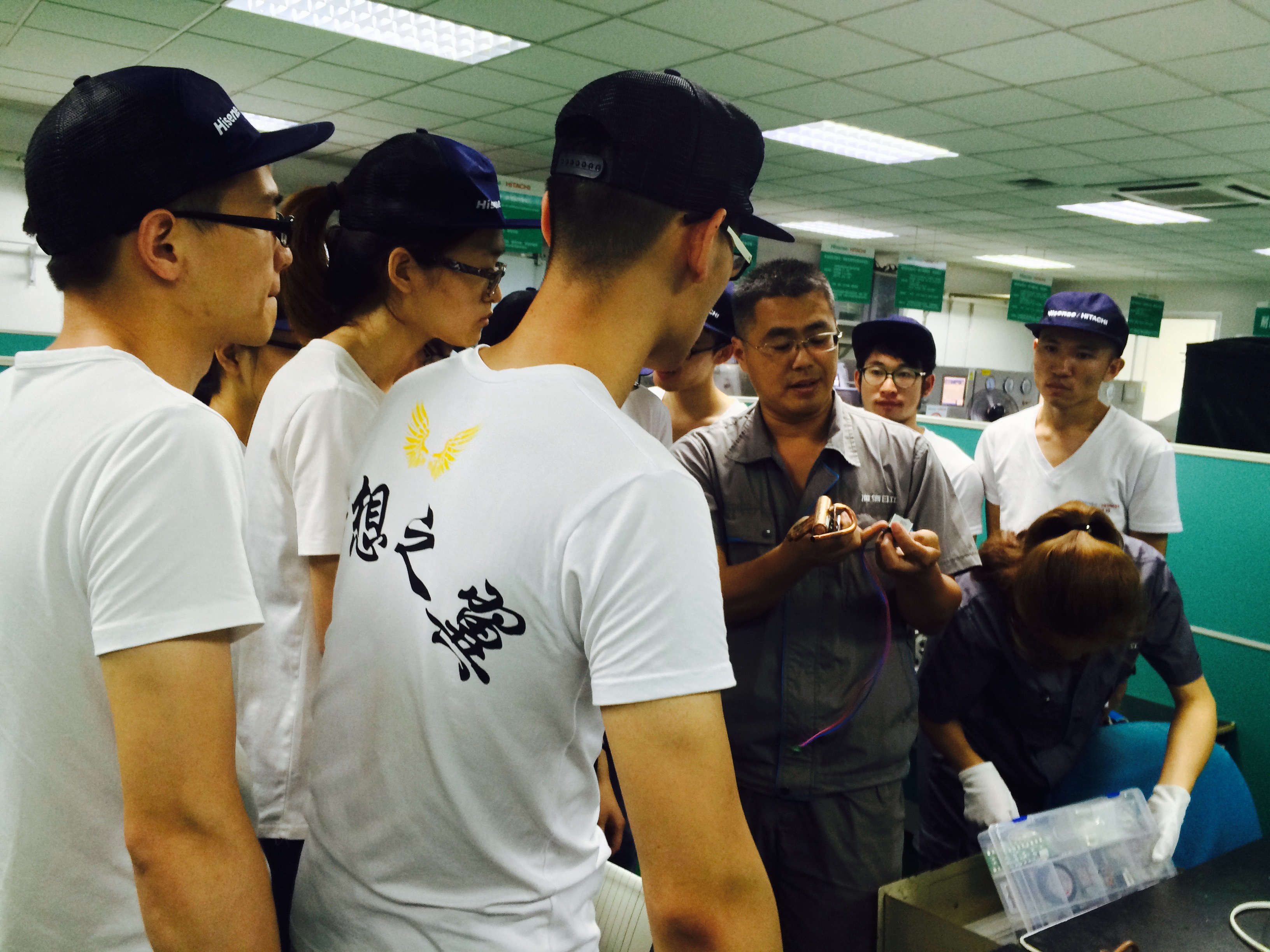 8点30分,海信日立制造部部长熊浩带来的《精益生产》报告准时开始。熊部长首先介绍了精益生产的基本概念,并就以成本、售价、利润为中心思想的三种企业生存方式展开了讨论,同时以丰田企业的发展为例,探讨了企业生产模式的变化及重要性。精益生产的概念是由美国麻生理工学院的Johnkrafoik结合日本汽车的工业生产的模式首次提出,他认为,精益生产就是消除浪费,而浪费就是不能成为钱的一切非附加价值活动或不能改变其物理化学形态的行为。海信日立在生产过程中秉承“精益生产”的原则,将“效率”二字展现的淋漓尽致。最后熊部长就接下来参观制造部的实践活动进行了安全嘱托,也希望大家通过近距离的认识多联机的生产工艺,能够有所收获。下午,在各工段负责人的带领下,团队成员们分别对多联机室内机与室外机的多条生产线进行了参观实习,对生产过程有了直观详细的认识。