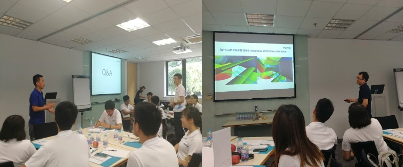 两天我们分别前往福伊特上海驱动和水电事业部进行了参观学习。驱动事业部总的研发中心位于德国的海德海姆城市,同时上海事业部也承担了重要的研发任务。驱动事业部的产品主要是为高铁、航空工业、汽车等提供减速齿轮箱、空压机以及车钩等等,除此之外还提供完备的售后服务。水电事业部主要是为水力发电提供发电机组和水轮机等。这两个事业部与我们专业相关性稍微多一点。所以无论是在与专家们的对话交流中,还是工厂参观中,我校学习都充分展现出自己的积极性,主动与专家交流,展现了交大学子勤奋好学的精神面貌,专家们也点赞队员们过硬的知识储备。