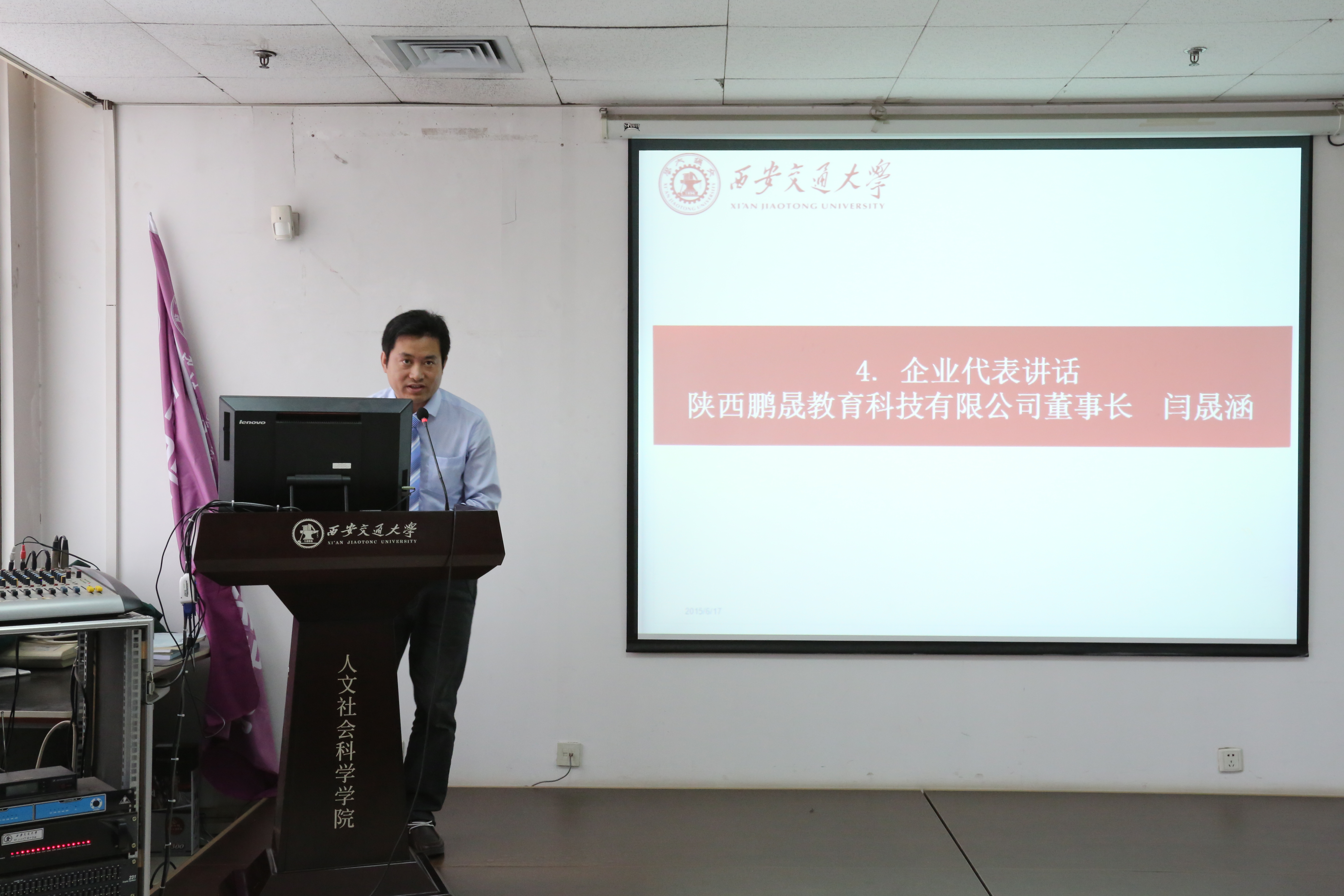 紧接着,陕西鹏晟教育科技有限公司(以下简称鹏晟公司)董事长闫晟涵作为企业代表发表了讲话。作为交大校友,闫晟涵董事长鼓励能动学子们发扬交大人的优秀品质和优良传统,走出校园,开拓眼界,在实践中不断提升自我,做更好的交大人。