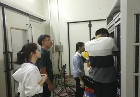 实习队员根据在校研究方向的不同,分成设计岗位工作和实验岗位工作两个方向。设计岗位的队员分工合作,使用CFD软件对空调整机进行了三维流动仿真,并对结果进行讨论向实验优化的工程师提供修改方向;除此之外,设计岗的队员还对一英文实验室测量标准进行翻译工作,加深对实验室和相关知识的理解,并为企业将新建的实验室给出建议要求的参考。实验岗位的队员参与到实验中,从测试件安装调配、实验开机关机、实验数据整理记录和中试设备运转不良后更换零件过程中,进一步加强了对中央空调设备的认识和与企业导师们的交流。队员们工作认真负责,独立协同能力好,自身的工作完成度很高。