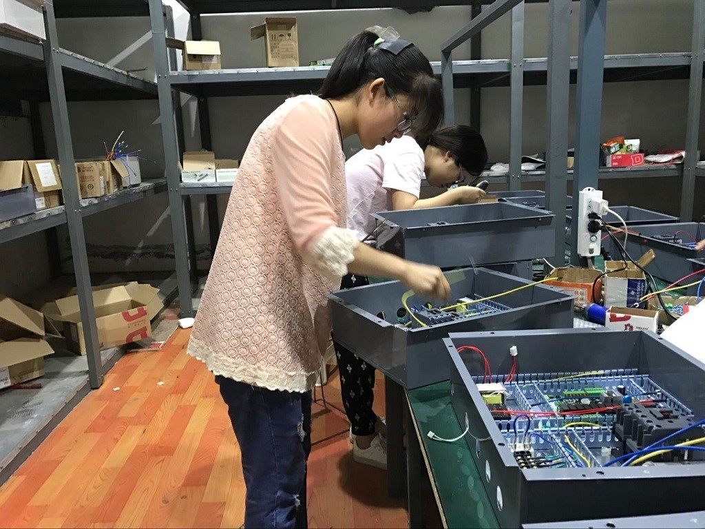 同时,实践队的女生们也体验了控制板电路连接组装的环节。“电路板是整个热泵产品的“大脑”,其线路也较为复杂。你们可以结合所学过的电路知识,比较样板,这样会更加容易理解“,带队的师傅耐心解说。之后,女生们根据样板体验了细致的接线工作。选线,对照线路,拧螺丝刀,三人配合得当,顺利成功完成了4个板路的接线,被师傅们夸赞“巾帼不让须眉”。