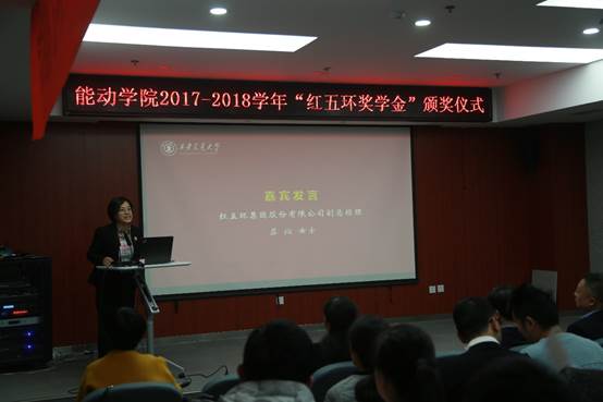 在北二楼报告厅举行2017-2018学年 “红五环奖学金”颁奖仪式。红五环集团股份有限公司副总经理苏沁、红五环集团副总经理蒋建江、91国产