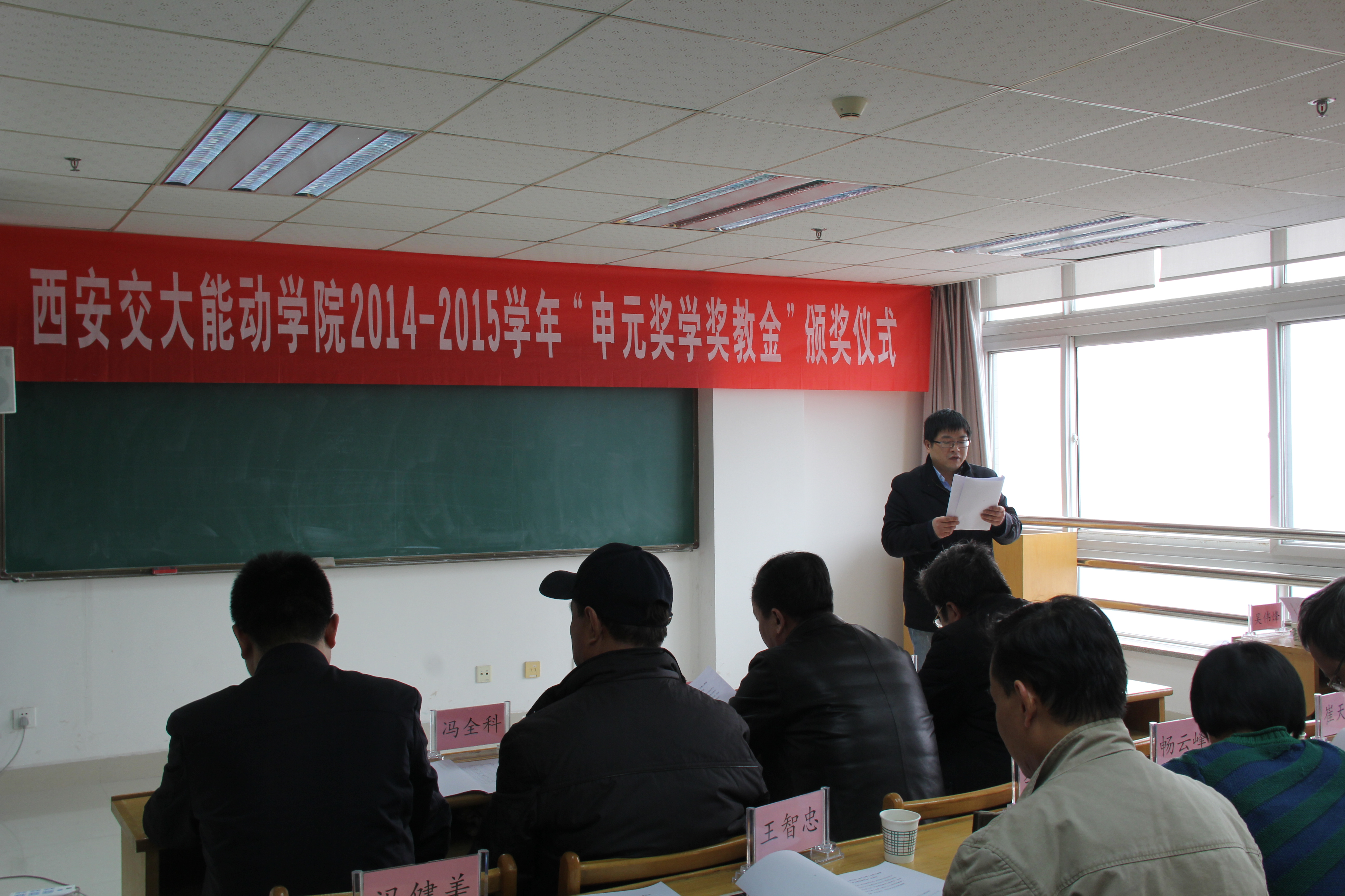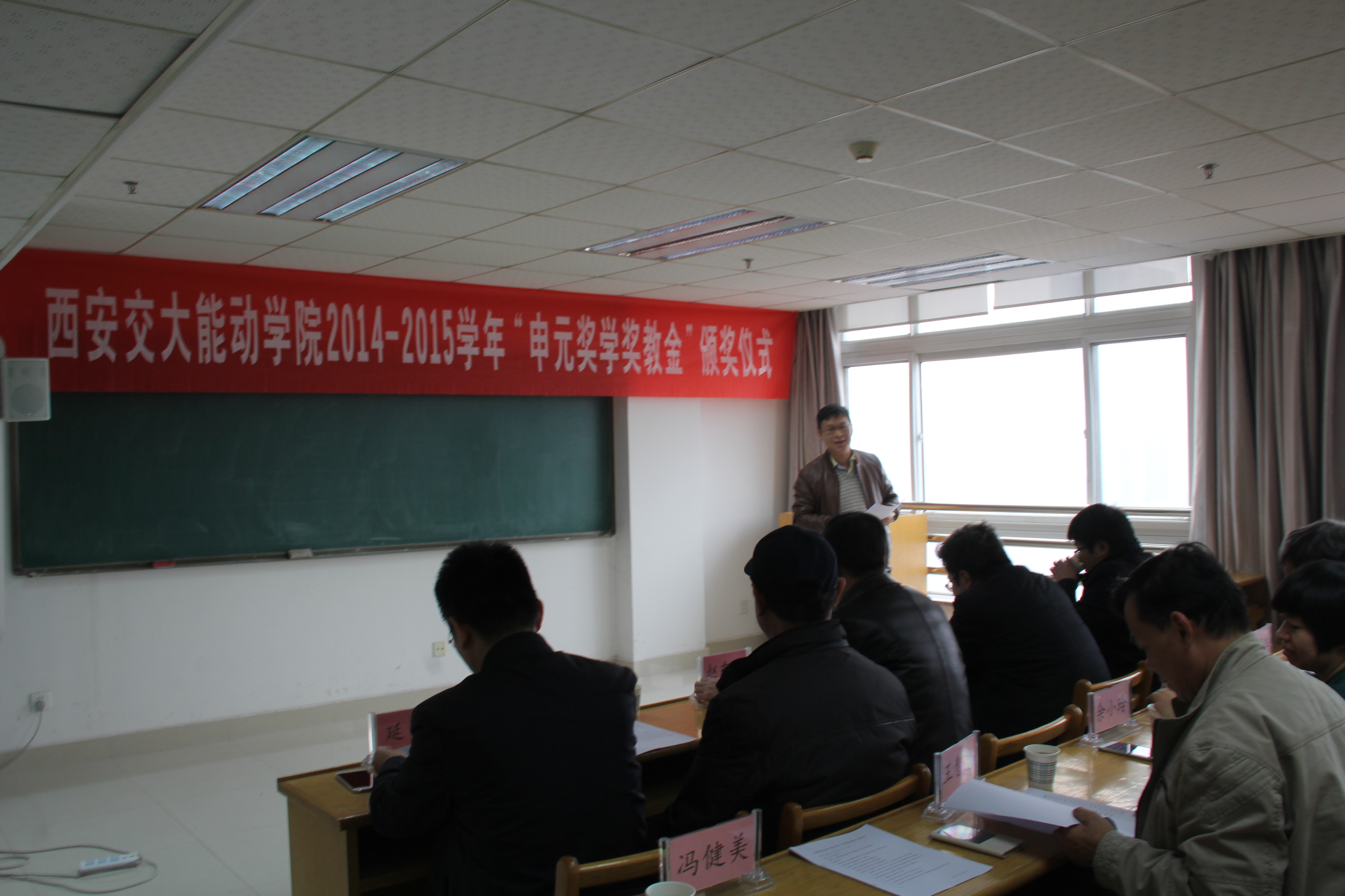 91国产 压缩机工程系支部书记、副系主任吴华根副教授宣读2014-2015年度“申元奖学奖助金”表彰决定及获奖师生名单