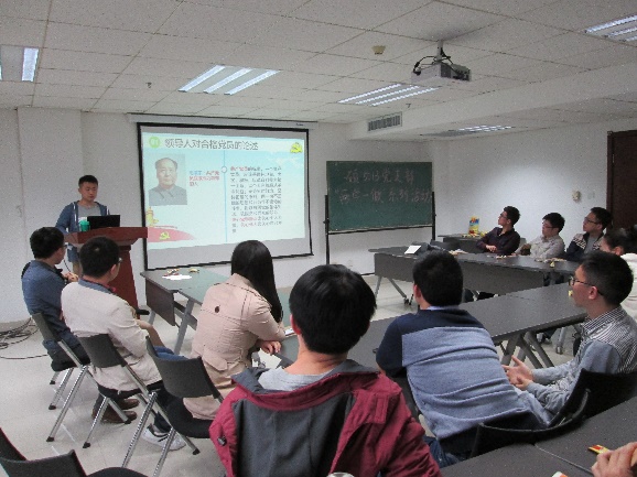 “积极分子应当以党员的要求要求自己,积极学习先进的东西,与时俱进,在现阶段,应当学习好科学知识,培养各方面的能力,为将来投身于国家建设打下基础”支部积极分子范晓军在讲述习近平总书记关于“四个全面”建设与当代大学生之间的关系时慷慨激昂地说道。生动的展现出一个先进积极分子昂扬向上的精神风貌与脚踏实地的实干精神。