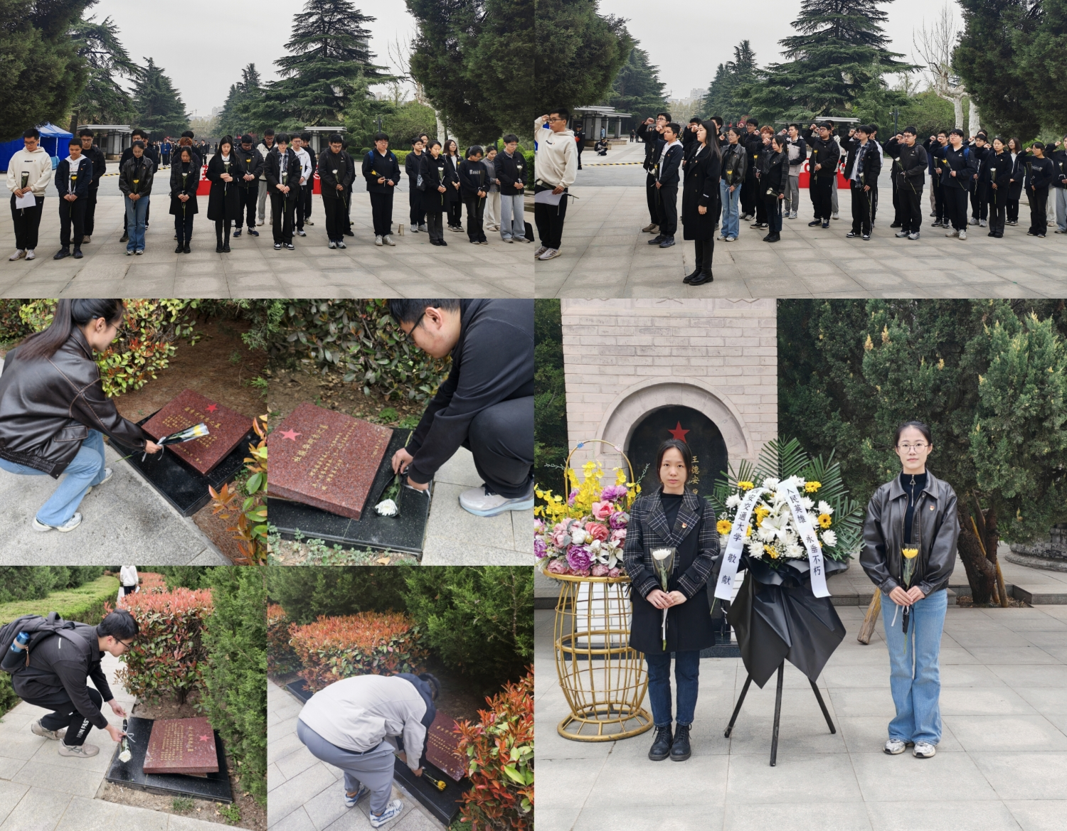 彭康书院本科生第一党支部邓官正同志主持。全体党员肃立默哀三分钟,深切缅怀为民族独立、人民解放和国家富强献身的革命先烈,党员代表赵梅宏、郑欣雨向烈士纪念碑敬献花篮并整理挽联,全体同志依次献上寄托哀思的鲜花。在杨淳同志带领下,全体党员面向党旗重温入党誓词,铿锵誓言回荡陵园。邓官正指出,陵园内长眠的千余位烈士以生命践行“革命理想高于天”的信念,其精神是激励新时代青年接续奋斗的精神火炬。他号召全体党员将缅怀之情转化为实干担当,在推进中国式现代化新征程中践行初心使命。
