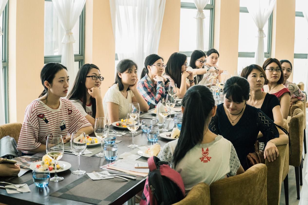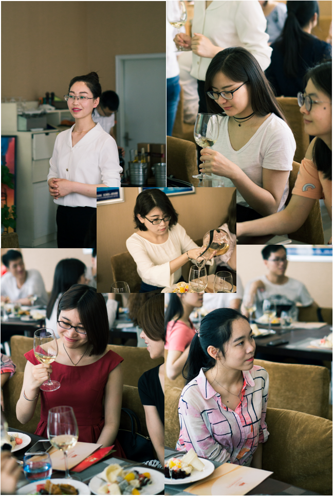 讲座中提到,每一次品酒分别有望、闻、品三步;通过对这三步的亲身体验,大家全方位的感受了葡萄酒的魅力。在这浪漫优雅的三个小时中,从品尝美酒到享用美食,从专业品酒师精彩的展示到参与者亲身体验,大家收获了快乐与充实。随后,在清脆的碰杯声中,品酒时间结束,成员们互相热切的交流和分享了自己今天的感受和收获,谈笑风生乐趣无穷。最后大家和酒庄相关工作人员合影留念,结束了今天的活动。