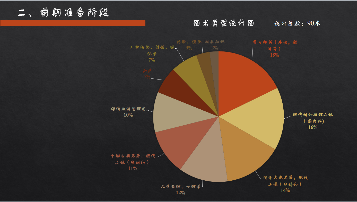 活动开始现场观众集体观看世界读书日的主题视频,随后学习部部长曹桦松向大家报告了活动前期筹备情况和后期工作安排。“书行能动”先后经历前期策划、书单调研、项目核算和统一采购,后续还将推进微书评和微图书等系列活动。曹桦松着重对活动意义和同学们的自主书单进行了分享和分析。种类涉及经济政治管理、人物传记、人生哲理、诗歌、名著、学习相关等等,一定程度上反映出了工科学生阅读的兴趣爱好。