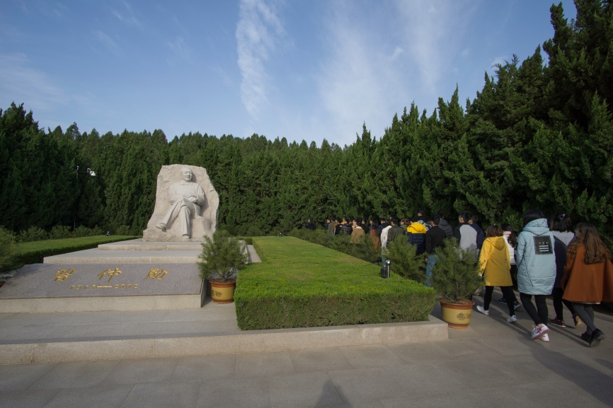 早上9时许,我们到达了本次参观学习的第一站,习仲勋陵园。在现场工作人员的安排下,我们有序地进入了庄严肃穆的习仲勋陵园。一进陵园,习老的雕像矗立在松柏之间,在旭日的光辉和蓝田的映照下,显得十分的简朴、大方。跟随着讲解员的引导,我们一步步走近,怀着崇敬的心情向习老鞠躬致敬,并在习老的雕像边绕行一周。大家都被镌刻在习老雕像背后,由习老爱人齐心所书,“天天战斗,天天快乐;奋斗一生,快乐一生”的生活态度与革命信念所鼓舞,同时也为两人和谐美满,相知相守的爱情所动容。