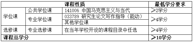 注:研究生论文写作指导(能动)必修课程,同时还必须修完:1门跨一级学科课程、1门全英文课程。