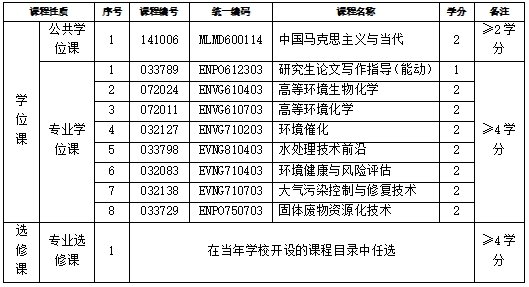 能源与动力工程学院环境科学与工程(083000)学术型硕博贯通、直博培养方案