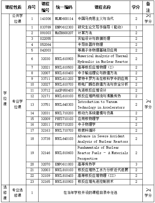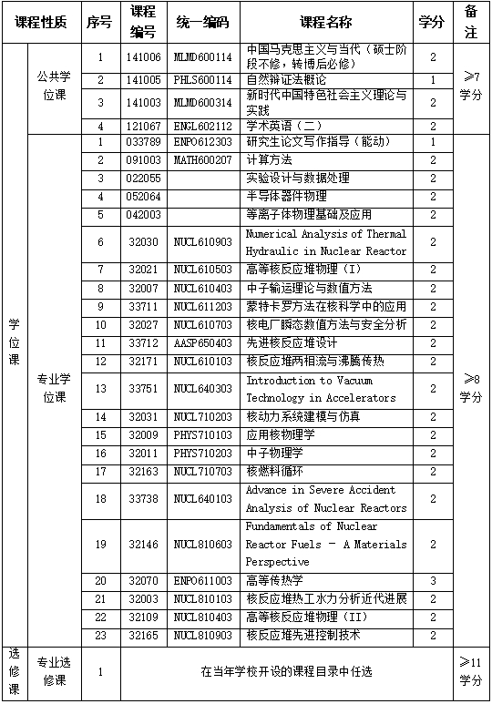 (2)知识结构:适应国家事业发展和世界科技进步的需要,掌握核科学与技术学科坚实宽广的基础理论和系统深入的专门知识,深入了解核科学与技术学科发展方向及国际学术研究前沿。