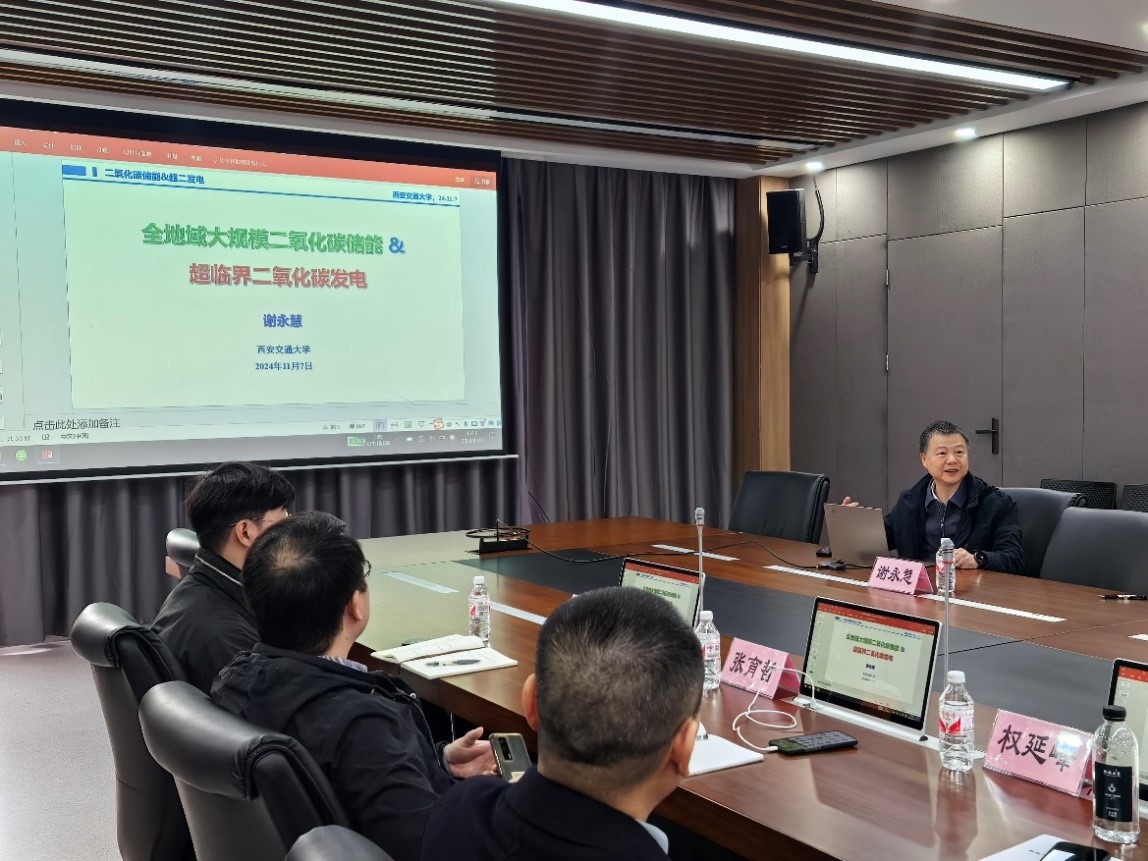 在下午技术交流环节,谢永慧教授做了关于气液互转CO2储能方向及超临界CO2发电方向的报告,详细阐述了相关技术的原理、应用前景及潜在挑战。与会人员积极探讨如何在技术创新上进行深度合作。