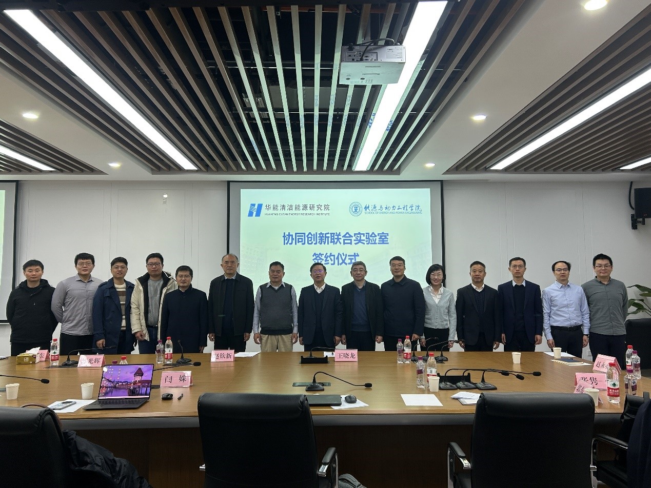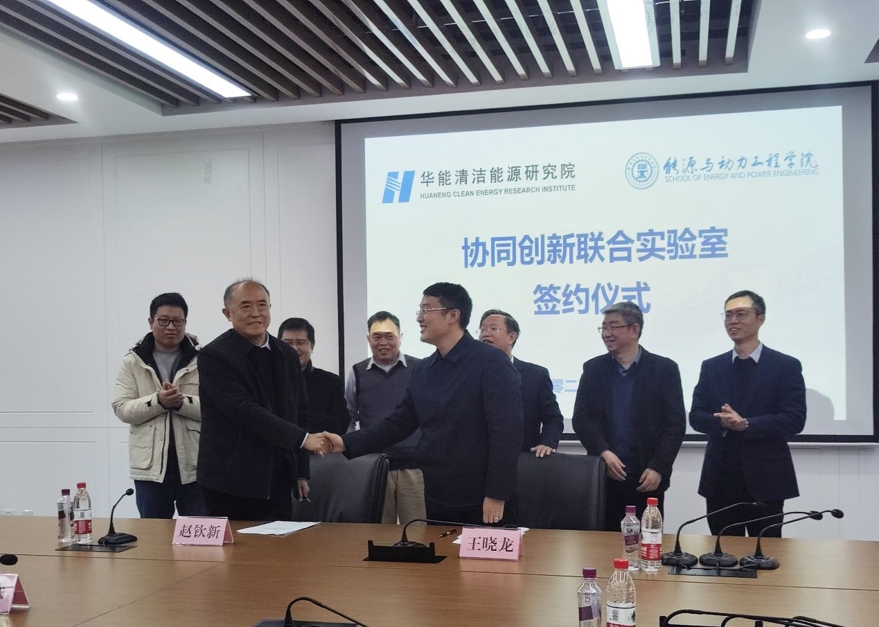 代表赵钦新教授与华能清能院代表王晓龙主任签署了合作协议,并合影留念。